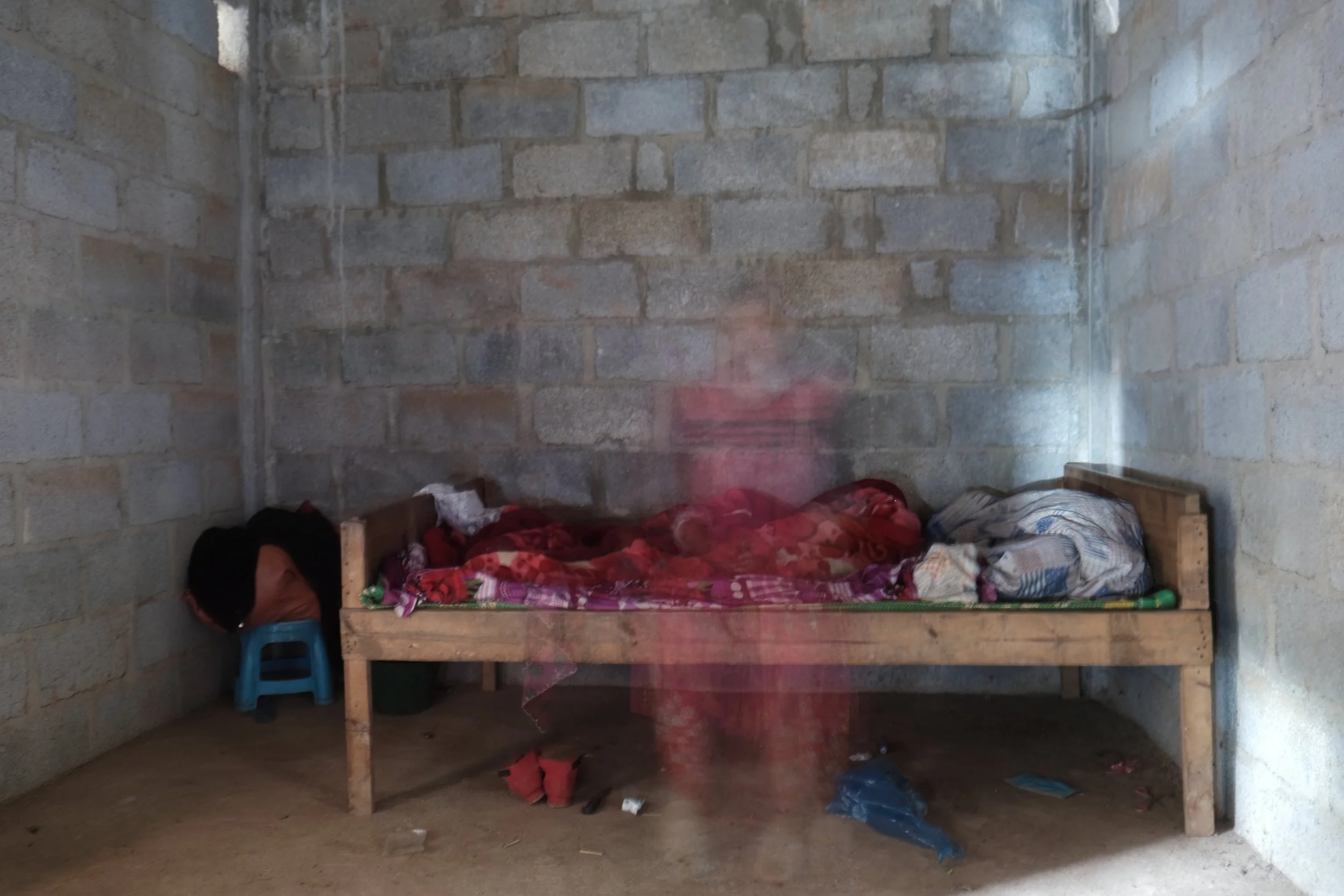 Dính’s mother is sitting at her own bed at home. Low shutter speed.